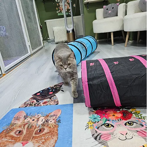 Otelimiz, gün ışığı alan geniş odaları, düzenli olarak temizlenen yaşam alanları ve kedi dostu malzemeleriyle öne çıkar. Kediniz burada hem özgürce hareket eder hem de kendi özel alanında huzur bulur.